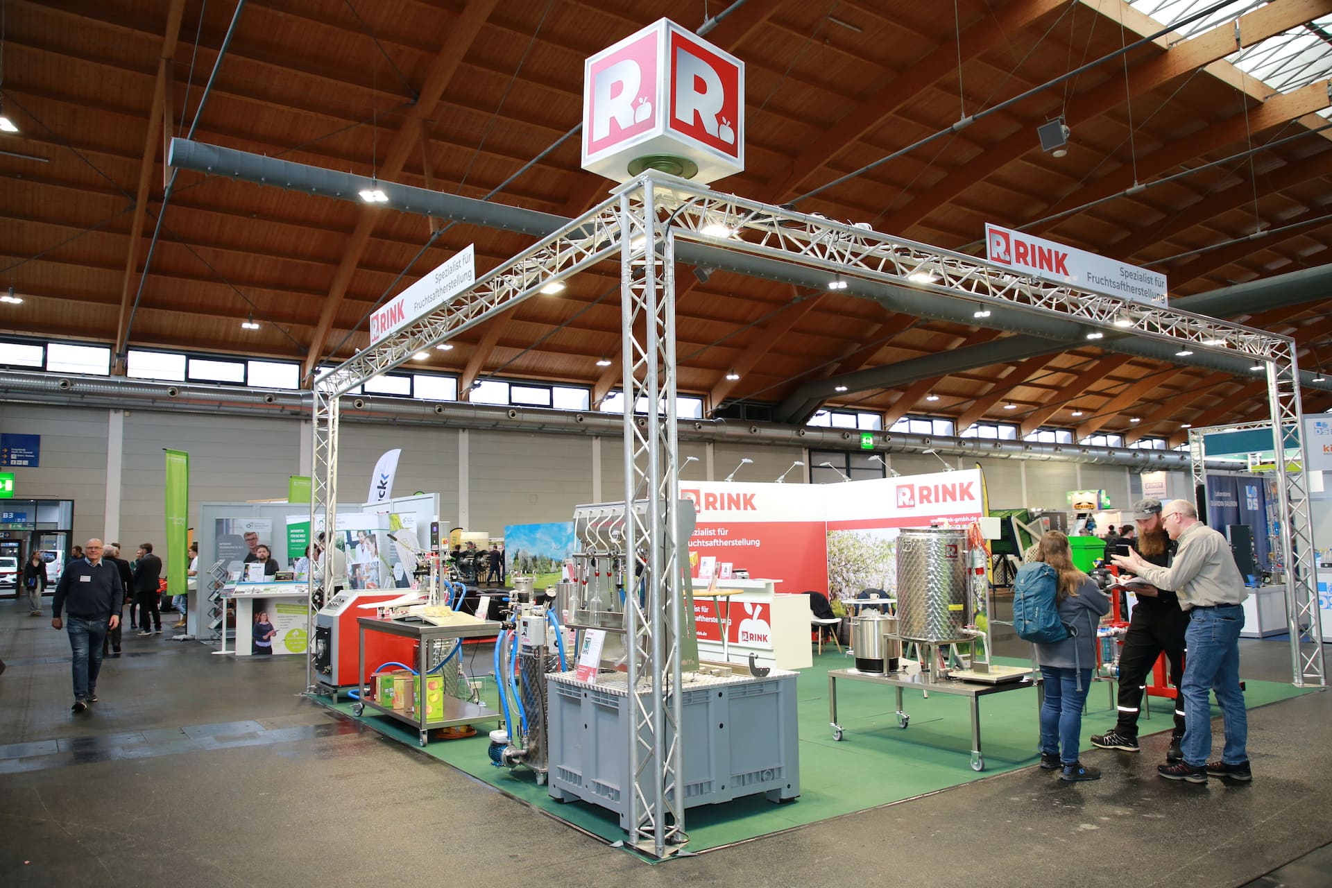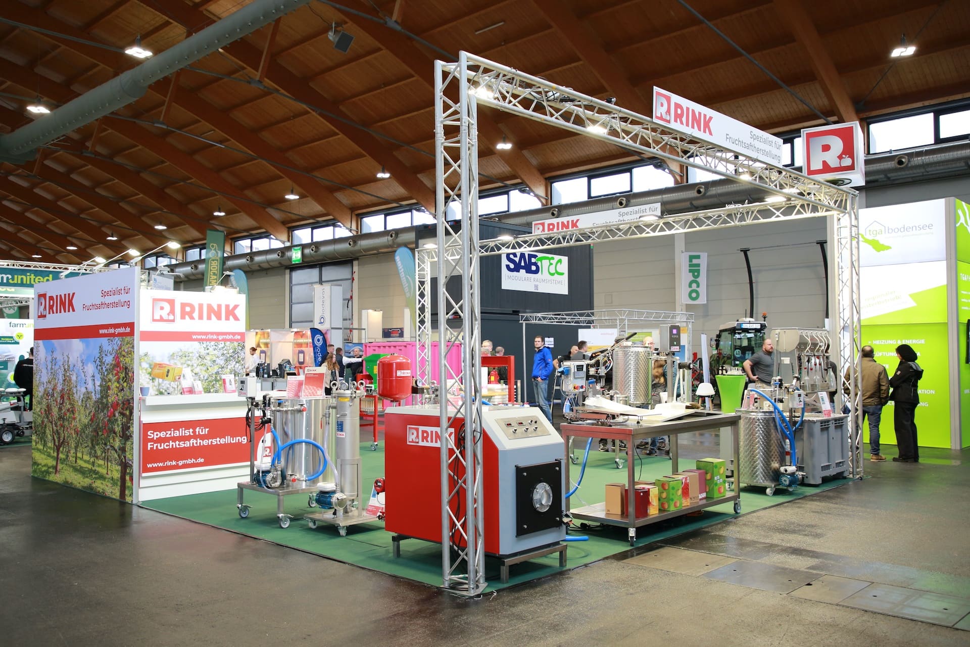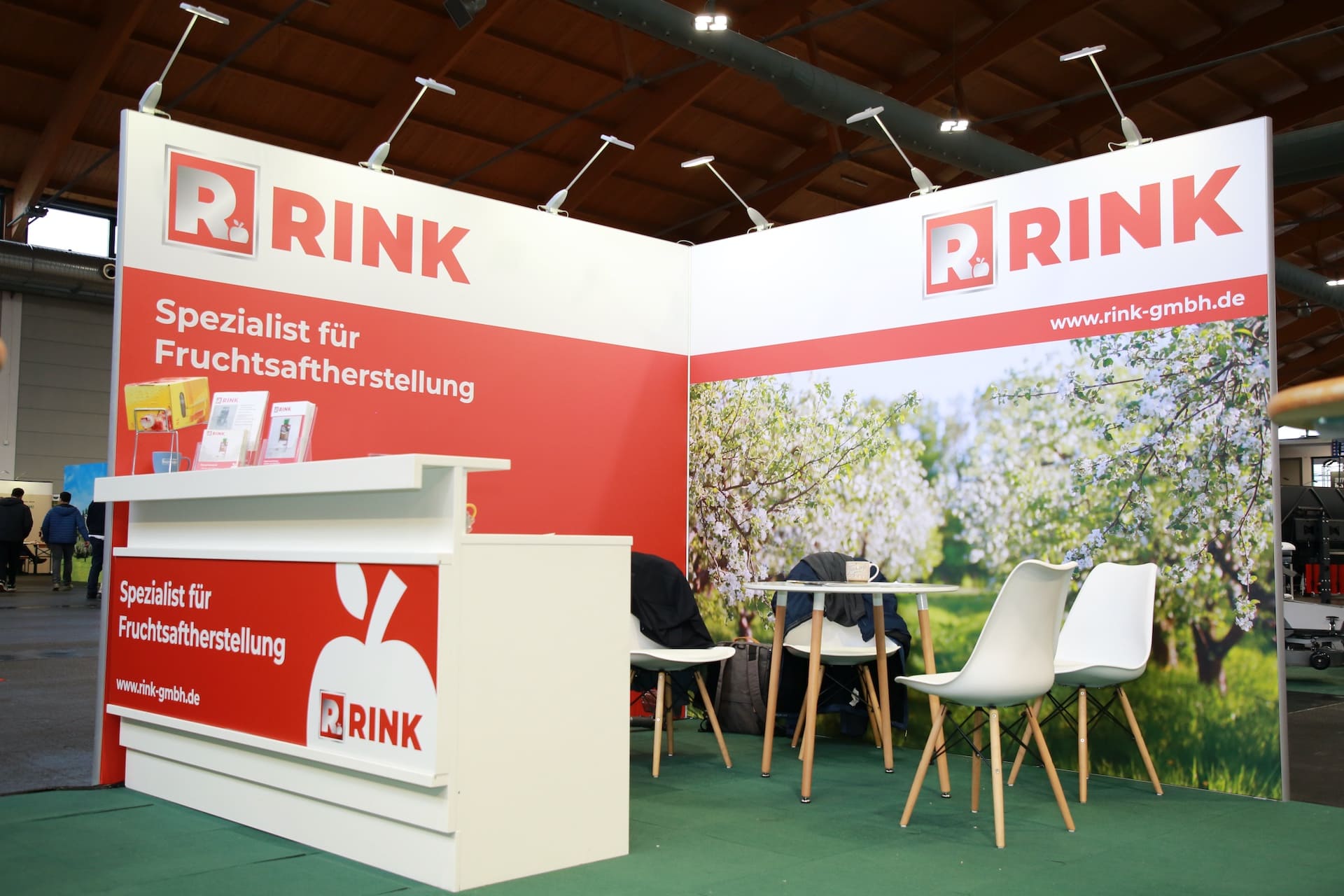 Exhibition booth Helmut Rink GmbH at the Fruchtwelt Bodensee in Friedrichshafen. For our customer Helmut Rink, we took over the complete handling of the exhibition stand including planning, realization, transport, and installation. It included the following services: